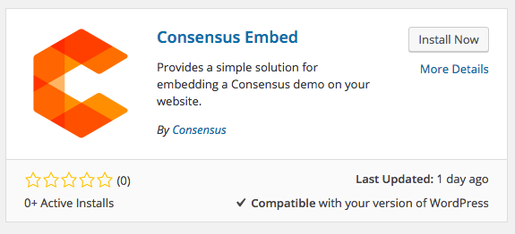 4. This will install the Consensus Embed plugin to your Wordpress instance. Now click on Activate Plugin to enable the plugin