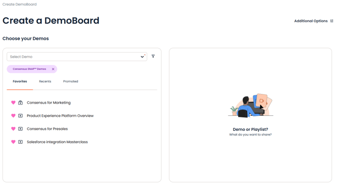 Additional Options: Consensus gives you several additional options to set up your DemoBoard for success. You can find these right at the top of the Create DemoBoard page.