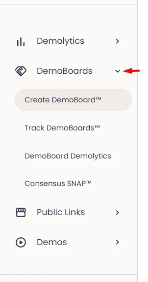 Creating a DemoBoard for a client inside Consensus is simple. When you create a DemoBoard in Consensus, the platform will create a unique URL that will be tied directly to each prospect you add within that organization. This allows Consensus to automatically generate Demolytics for each prospect as soon as they watch the demo(s).
