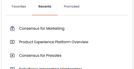 - Promoted: Your Admins can promote demos to show here, so if you have a large list and are not sure which demos to use, you know you can always trust the promoted demos! These demos will also be represented by a Star icon within the Demo Library.