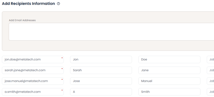 Once you add your recipients, Consensus will try to autofill the Organization and First & Last names of recipients based on their email, where possible.