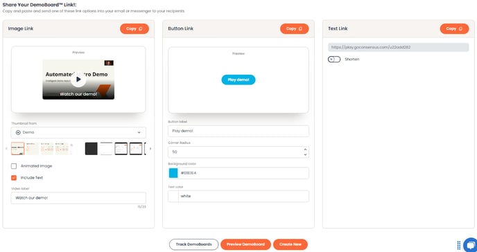 That's it! Now you'll have the ability to choose from three different DemoBoard Calls to Action you can use to add to your prospect outreach, whether it is through email, chat, text, or however you are communicating with them: