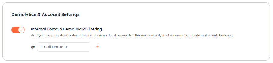 This setting allows you to control which email domains should be registered as internal domains, allowing you to easily filter out internal engagement of your demos.