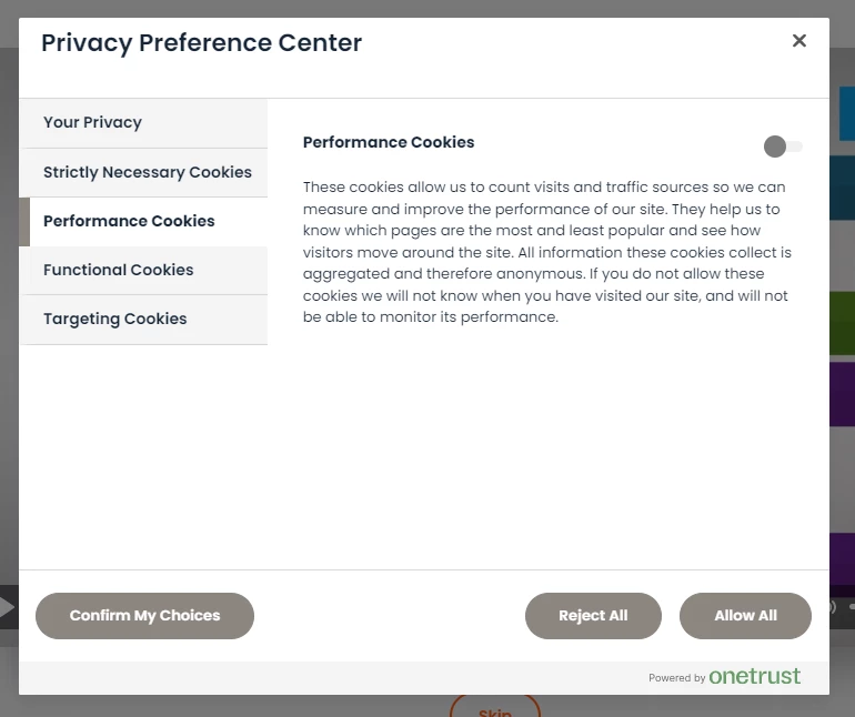 - Users can select to accept all cookies, reject all, or set their individual cookie preference