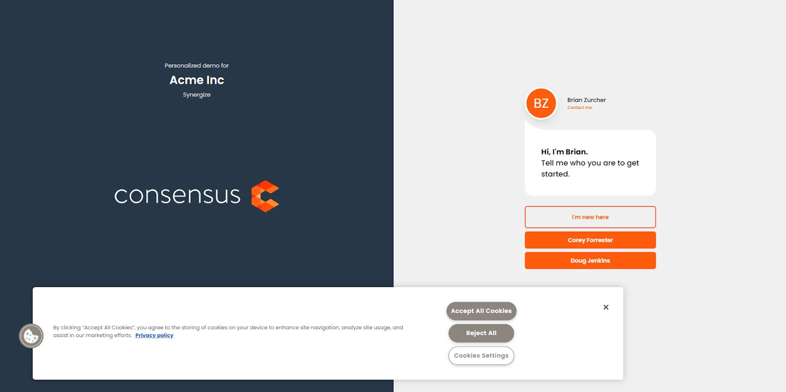 Consensus takes the privacy and security of your viewers seriously. Accordingly, we include cookie acceptance and management across all Demos.