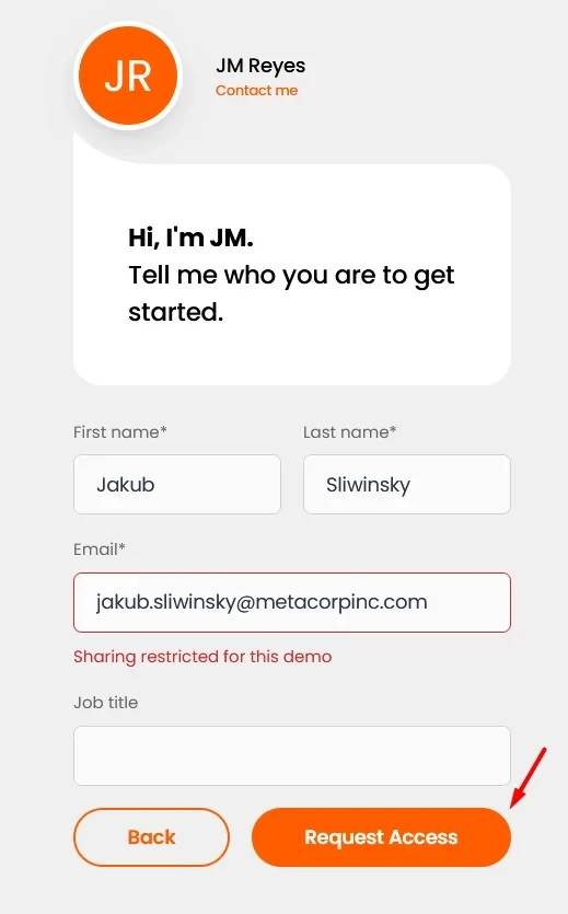 Request Access- Users are asked to 'Request Access' if the email does not align with the Email associated with the DemoBoard invite.
