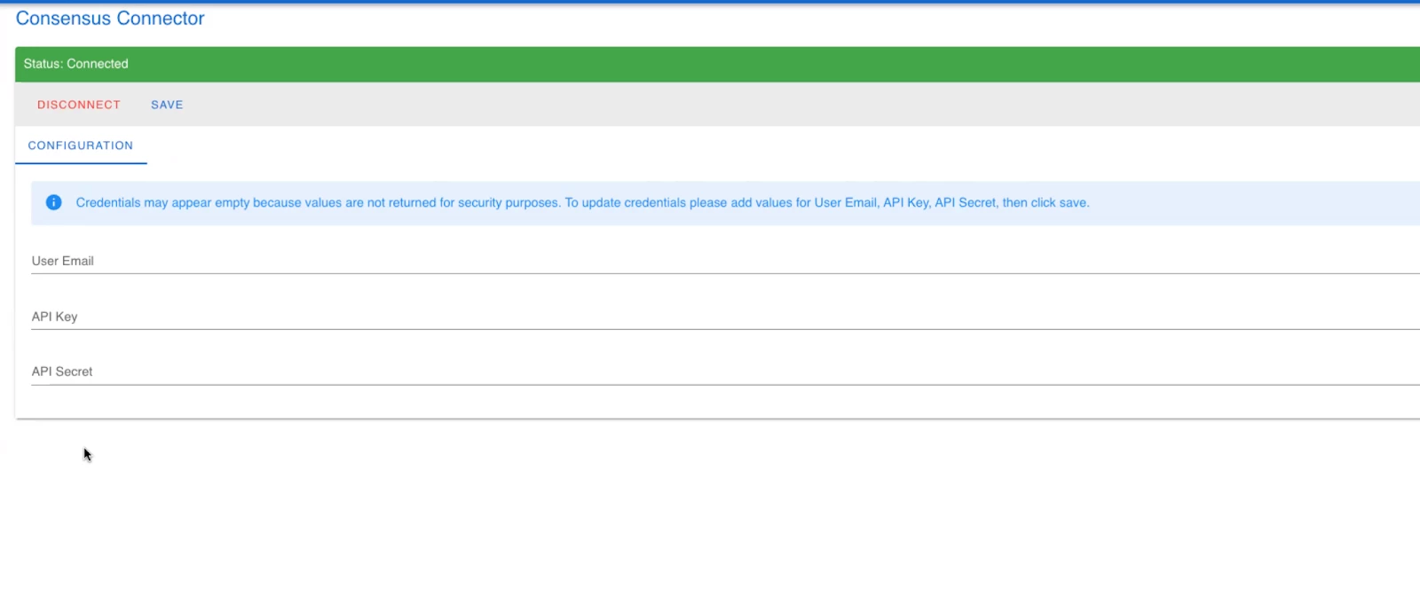 - You will need to be an administrator of your Consensus account in order to have access to your API Key and Secret.