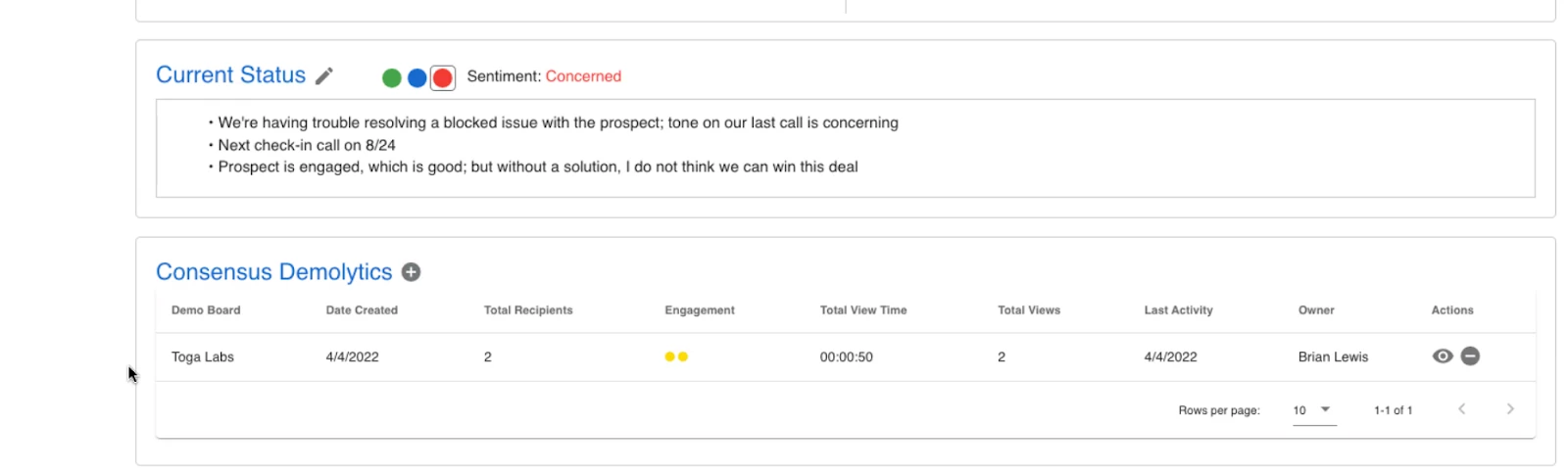 - SEs want to know what has a prospect seen so far, how have they prioritized demo content, and who has seen the demo content.
