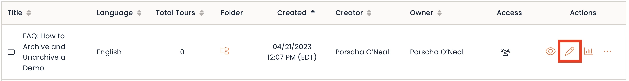 - Within the "My Demos" tab or the "Demo Library" tab find the Demo you want to edit.