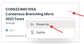 Once you find the demo, you can just click on the three dots. This will give you two options: “Share As” and “Expire” the DemoBoard. Choose Share As, and you can easily retrieve the link again for copying and pasting, so you won’t need to create a new link to send to your prospect.