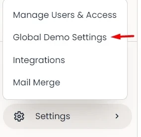 To keep sharing enabled, but limit the risk that the demo will be shared with others outside the prospect's company, go to Global Demo Settings: