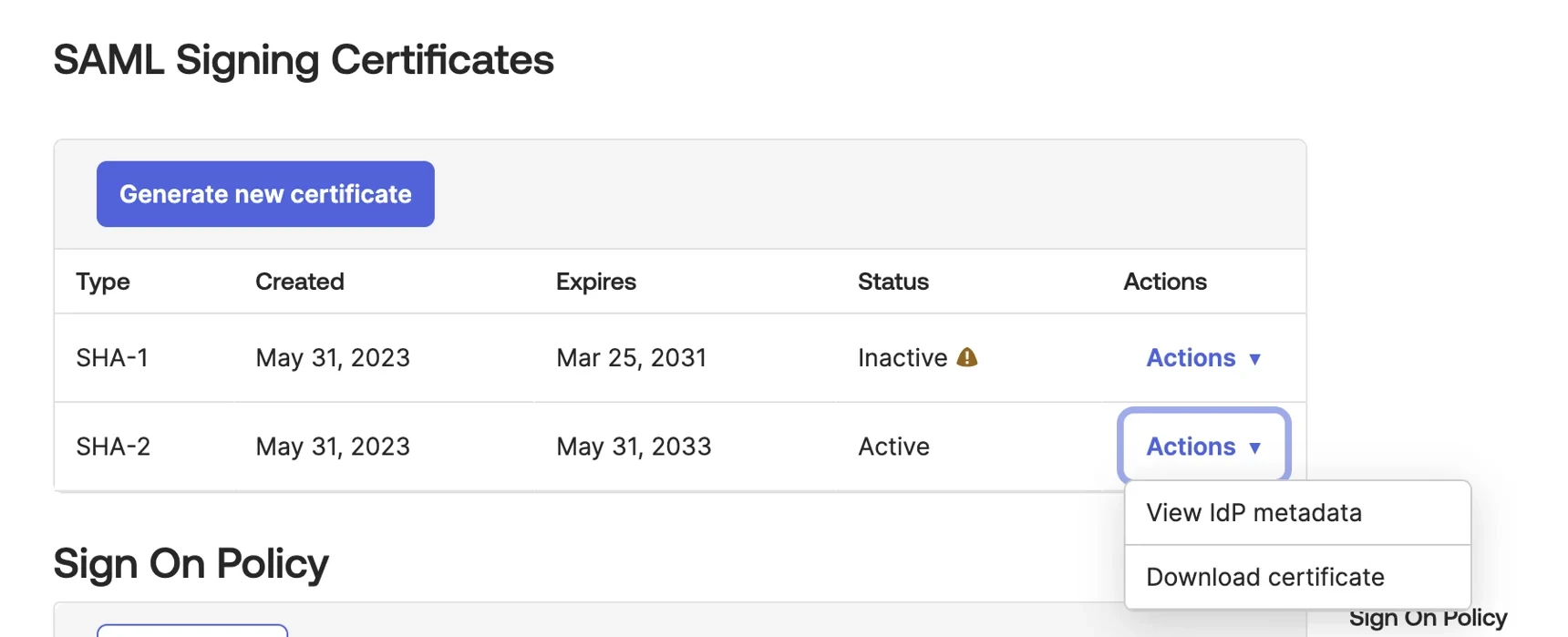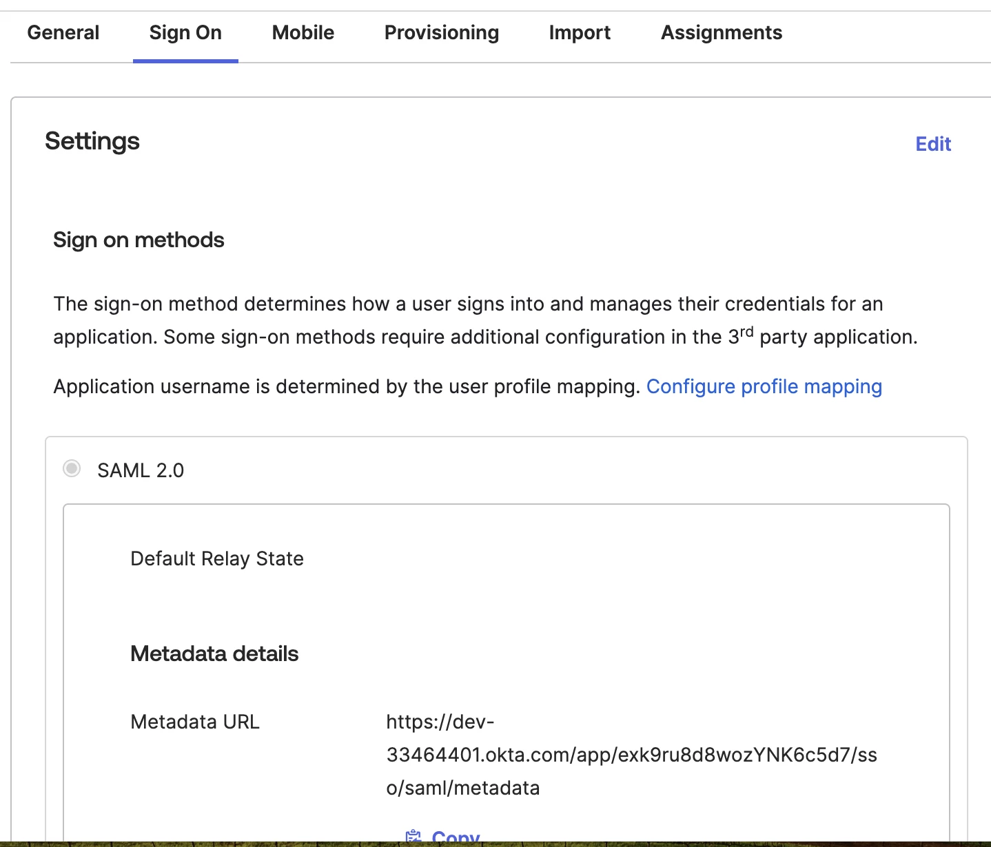 if you choose this approach, you'll need to first view the metadata, which opens a new tab, and then you'll need to copy the URL for that metadata.