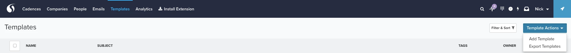 3. Next, go to Salesloft and pull up Templates in the Cadences menu at the top