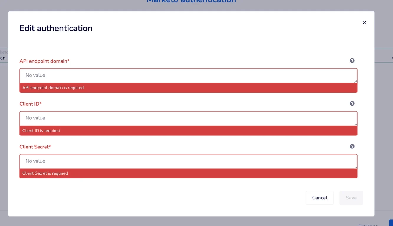Please reach out to your Consensus CSM, AE, or to our Support desk to setup a meeting with our product team. On that meeting, meeting Consensus will send a one-time use link to enter in both your Consensus and Marketo API credentials. For this step you’ll need to have both your Marketo credentials from Step 3, and your API Credentials from Consensus.
