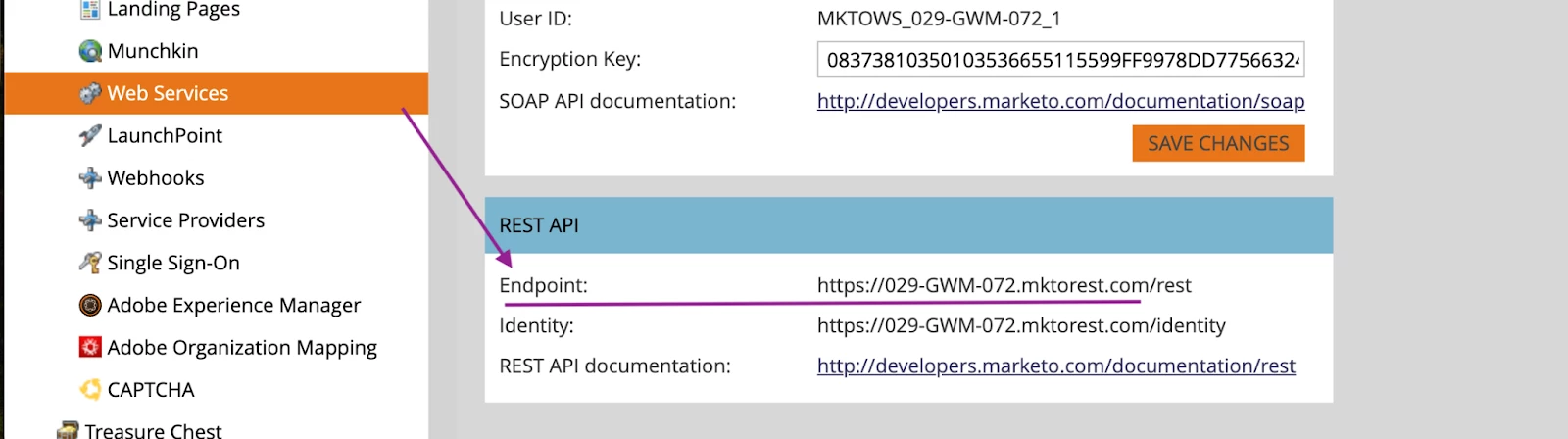- You can find this by going to your Marketo Dashboard > Admin > Web Services. Do not include the /rest or /identify from the url (you only want to copy through .com and nothing after that)