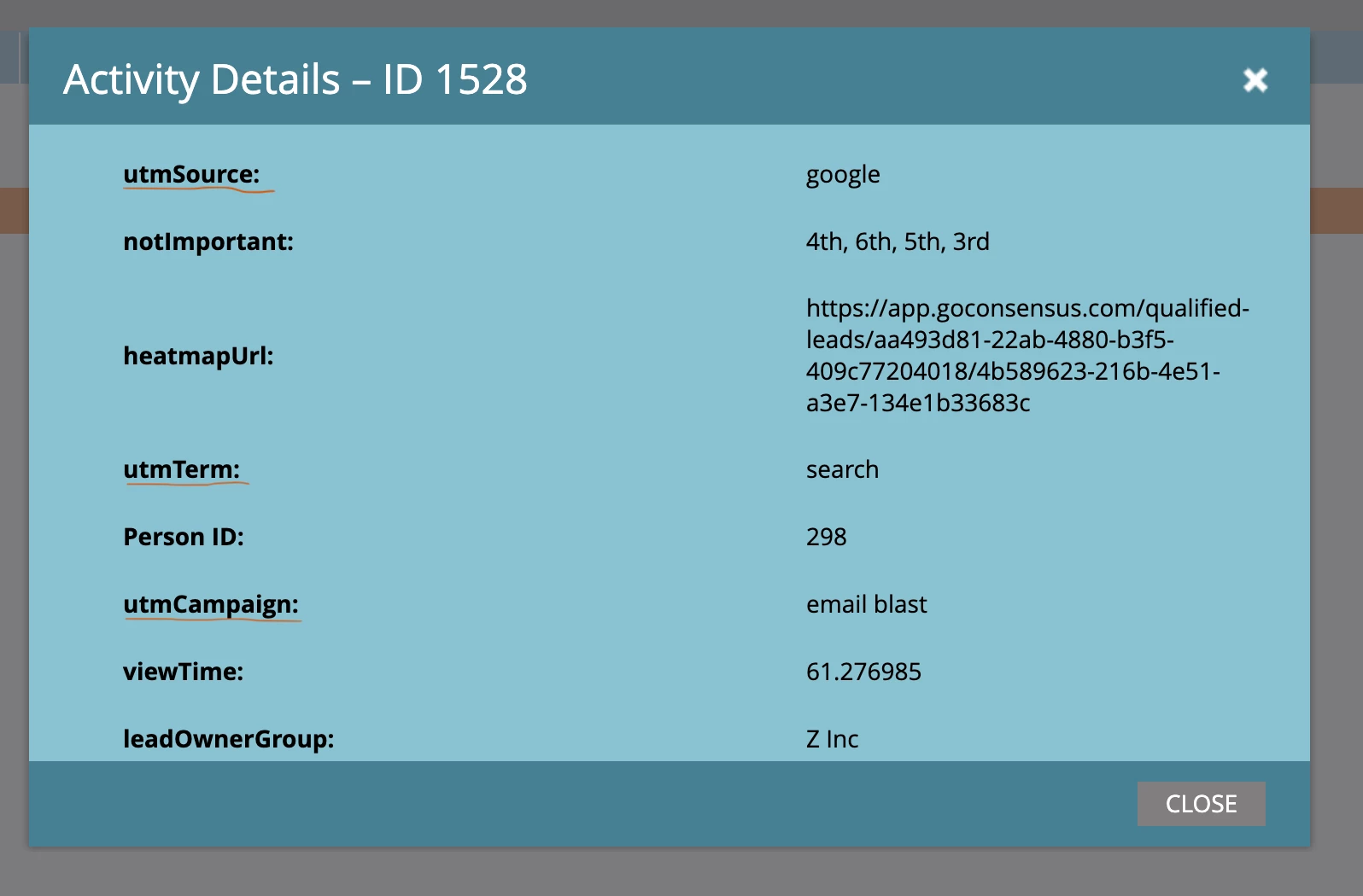 When either redirecting users to a public link, or embedding a public link on your website, you can append these parameters to the link and we'll pass through the data to the custom activity when a qualified lead is created in Consensus.