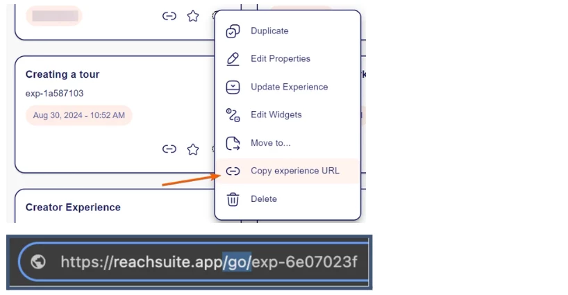 To get the Go Link simply click “...” on the tour tile and click “Copy experience URL”. The Go Link will be copied to your clipboard and ready to share internally or externally. You can always identify whether the link you have is a Go Link or not by looking at the URL. If the URL has /go/ in it, you are using the Go Link