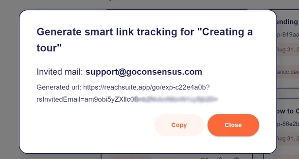 The user will then be provided with a unique link they can copy and paste into an email being sent to a prospect or customer so the user can then track the viewing behavior