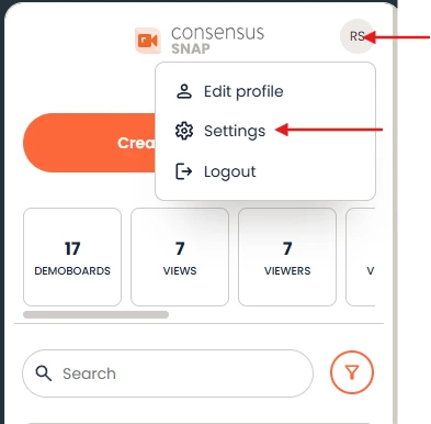 Click on your profile Icon on the top right-hand corner of Consensus Snap: